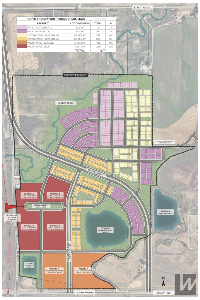 210 acres with an estimate of 3,000 developed lots.  Mix of detached single family homes, paired, town homes, multifamily and high rise. A smaller area designated for commercial in the north west corner of the property.  Currently in entitlement phase.