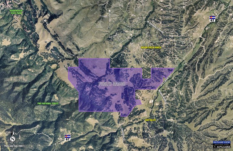 Penley Ranch is located approximately three miles southwest of Sedalia, north of Highway 67 and west of Highway 85. The property is located in Douglas County and consists of approximately 1215 acres of premier rural-residential real estate with views of both Downtown Denver and the Front Range. While nestled within a private mountain setting, the Penley Ranch is located less than ten minutes from Highway 85 providing a minimal daily commute. Decorated with rock outcrops, scrub oak forests, open range, wandering creeks and mountain terrain. Sold 2.2025